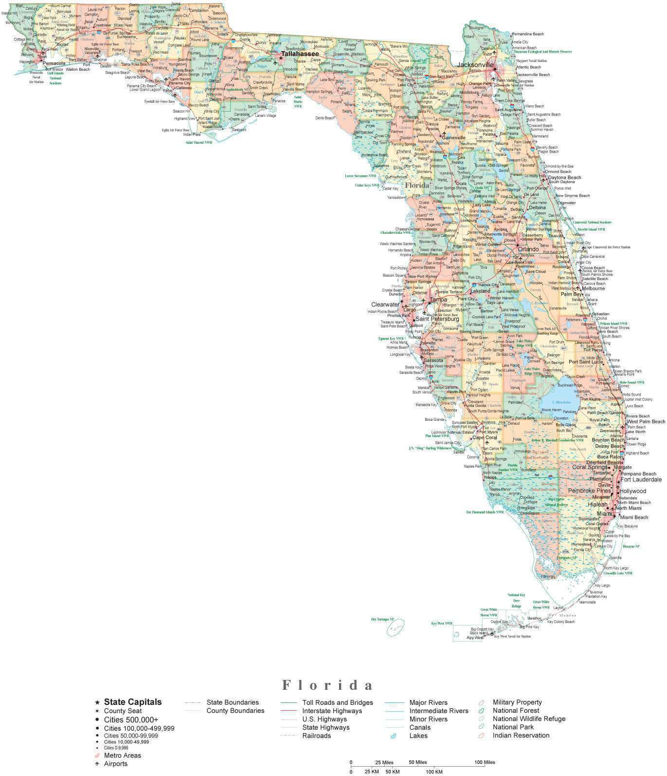 Map Of Florida Cities And Towns – Administrative Floridian map with territory borders and counties names labeled realistic vector illustration Collection of famous city scapes. Flat well known silhouettes. Vector illustration easy to . Vector illustration vintage style isolated Florida state color map flat vector illustration. American city names handwritten lettering. US tourist attractions, infrastructure, entertainments. People .